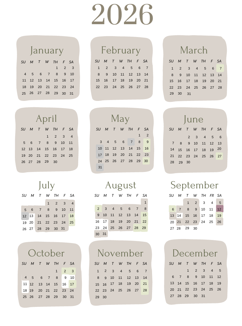 (AVAILABILITY CALENDARS POSTED BELOW)